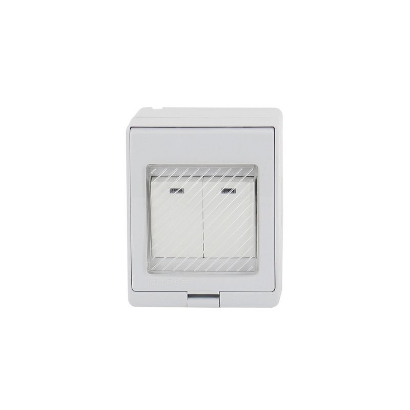 El Hydrobox Interruptor Doble Sobrepuesto 9/15 permite controlar dos circuitos eléctricos con seguridad en ambientes húmedos, polvorientos o expuestos a líquidos. Construcción robusta y membrana flexible garantizan durabilidad y protección total.